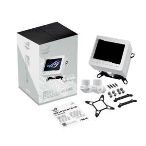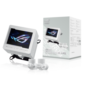 Le watercooling ASUS ROG Ryujin III 360 ARGB White Edition est un refroidisseur de CPU tout-en-un avec écran LCD 3.5″ personnalisable doté d’une pompe Asetek de 8ème génération avec ventilateur intégré pour refroidir les VRM et 3 ventilateurs ARGB magnétiques de 120 mm avec radiateur ROG. L’écran LCD de 3.5″ intégré à la pompe permet de contrôler instantanément les fréquences d’horloge, les tensions, les températures, la vitesse des ventilateurs et le débit d’eau, ou d’afficher vos GIF personnalisés.