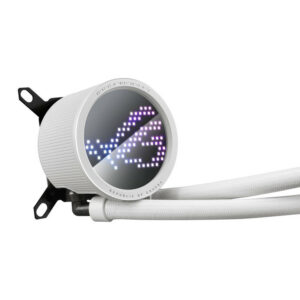 Le ROG Ryuo III proposé par ASUS est un kit de watercooling tout-en-un conçu pour les PC gaming équipés d’un processeur véloce. L’ASUS ROG Ryuo III prend en charge les sockets Intel LGA 115X/1200/1700 et AMD AM4/AM5 pour assurer la compatibilité avec les dernières générations de processeurs Intel et AMD. La pompe Asetek de huitième génération couplée aux ventilateurs ASUS ROG AF 12S ARGB assurent un refroidissement optimal pour profiter de votre processeur à ses fréquences maximales. L’écran Anime Matrix LED permet d’afficher la température, les fréquences et la vitesse des ventilateurs pour un check rapide de la configuration.