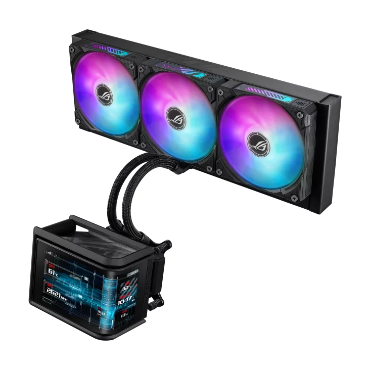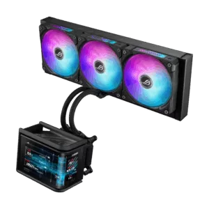 Le tube court de 200 mm et l’écran LCD coulissant réduisent également l’obstruction des composants, optimisant ainsi l’expérience visuelle. La puissante pompe et les ventilateurs ROG ARGB assurent un refroidissement stable des processeurs, notamment des processeurs AMD Ryzen série 9000 et Intel Core Ultra.