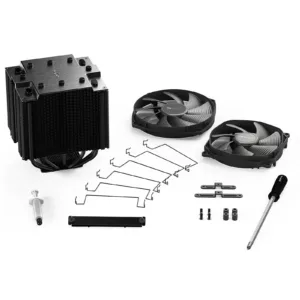 Le Dark Rock Pro TR4 contient deux dissipateurs thermiques en aluminium. Les découpes fournies améliorent sa compatibilité RAM. Deux ventilateurs de 120 mm et 135 mm sont pré-installés. Il est également possible d’ajouter un autre ventilateur 120mm pour un meilleur refroidissement.
