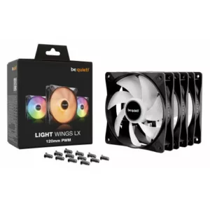 Le be quiet! Light Wings LX 120 mm PWM est un ventilateur ARGB de 120 mm conçu pour offrir un refroidissement efficace tout en restant silencieux. Il se démarque par son design élégant avec des pales dépolies et une finition noir mat. Il est équipé de 16 LED RGB adressables pour des effets de lumineux personnalisables Ce ventilateur est idéal pour les configurations nécessitant des performances de refroidissement élevées avec des nuisances sonores minimisées.