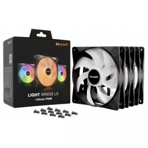 Le be quiet! Light Wings LX 140 mm PWM est un ventilateur ARGB de 140 mm conçu pour offrir un refroidissement efficace tout en restant silencieux. Il se démarque par son design élégant avec des pales dépolies et une finition noir mat. Il est équipé de 16 LED RGB adressables pour des effets de lumineux personnalisables Ce ventilateur est idéal pour les configurations nécessitant des performances de refroidissement élevées avec des nuisances sonores minimisées.