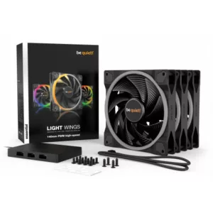 Le be quiet! Light Wings est un ventilateur silencieux ultra-performant au design superbe grâce à son double éclairage ARGB (avant et arrière). Si vous recherchez un ventilateur silencieux au look séduisant sous tous les angles, le Light Wings 140 mm PWM High Speed est le ventilateur idéal. Plus qu’un atout style, il est également fiable et performant. Ce ventilateur offre un équilibre parfait entre performance, silence et jeux de lumière ARGB. Le Light Wings 140 mm PWM High Speed offre de superbes effets lumineux pour un look unique et spectaculaire, des performances solides et un fonctionnement silencieux doublé d’un refroidissement efficace.
