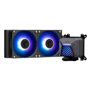 Le MSI MAG CORELIQUID A15 240 est un système de refroidissement liquide tout-en-un compatible avec les sockets AMD et Intel récents. Il a été conçu dans le but d’offrir d’excellentes performances de refroidissement et en silence des plus appréciable. Le MAG CORELIQUID A15 240 présente un design audacieux d’inspiration militaire, avec des lignes nettes et angulaires qui respirent la force et la précision. Une finition de peinture raffinée associée à des accents en aluminium brossé rehausse l’aspect haut de gamme de la tête de refroidissement. Pour vous assurer d’excellentes performances il est équipé de ventilateurs CycloBlade 9 de MSI qui offrent un flux d’air puissant et une pression statique élevée. Ces ventilateurs émettent des effets d’éclairage ARGB qui permettent à votre plate-forme de jeu de se démarquer.