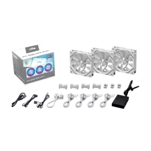Ventilateur sans fil ARGB 3 x 120 mm – Conception magnetique – Hub de ventilateur inclus, prend en charge jusqu’a 18 ventilateurs EZ120 – Cable en guirlande inclus – 28.82 dBA – 73.82 CFM