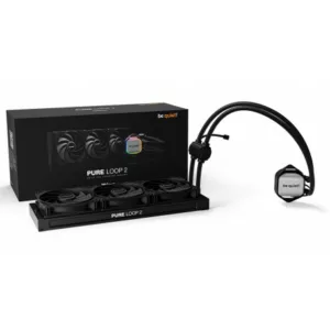 Le Pure Loop 2 FX 360 mm de be quiet! est une solution de watercooling tout-en-un, à la fois silencieuse et performante, équipée d’un éclairage ARGB spectaculaire. Elle assure des performances de refroidissement très élevées pour tous les processeurs grand public. Elle est équipée de 3 ventilateurs PWM high speed de 120 mm qui garantissent une pression statique élevée. Sa pompe PWM déportée et doublement isolée pour un fonctionnement silencieux et des vibrations minimales. Son look unique et élégant transformera votre configuration, grâce à un design entièrement noir, à une finition style aluminium et à son superbe éclairage ARGB.