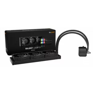 Le Silent Loop 3 de be quiet! est un système de refroidissement liquide tout-en-un conçu pour offrir des performances élevées tout en restant quasiment inaudible. À cette fin, il embarque une pompe PWM triphasée à 6 pôles qui réduit les vibrations et les turbulences, assurant ainsi un fonctionnement silencieux, tout comme les ventilateurs Silent Wings 4 de 120 mm PWM high-speed. Le Silent Loop 3 se distingue également par son design élégant avec un éclairage ARGB discret sur le dessus de la pompe.