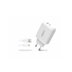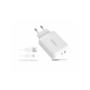 Le chargeur secteur POWEE possède une sortie USB-C de 45W ainsi qu’une sortie USB-A de 18W qui vous permettront de charger aussi bien votre tablette que votre téléphone en un temps record. Son design est compact et les prises USB centrales vous permettront de brancher et débrancher votre câble très facilement. Le chargeur est accompagné d’un câble USB-A vers USB-C de 1mètre de long.