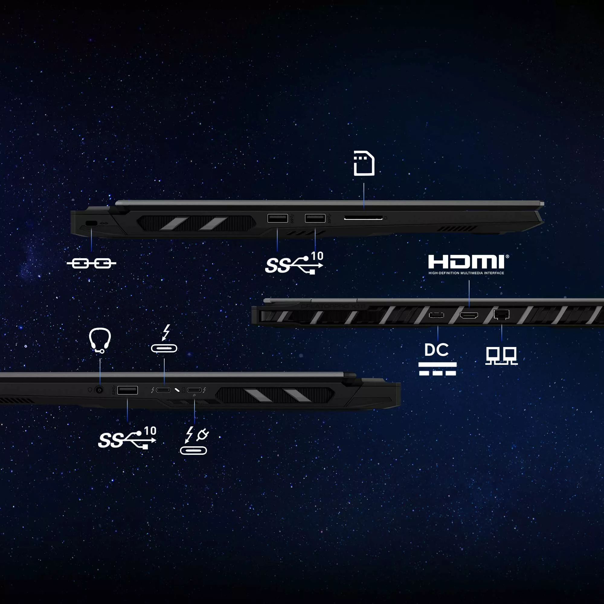 Le CreatorPro X18 HX A14V vous propose une connectique complète, proche de ce que propose un véritable ordinateur de bureau. Cela assure une expérience flexible et polyvalente.