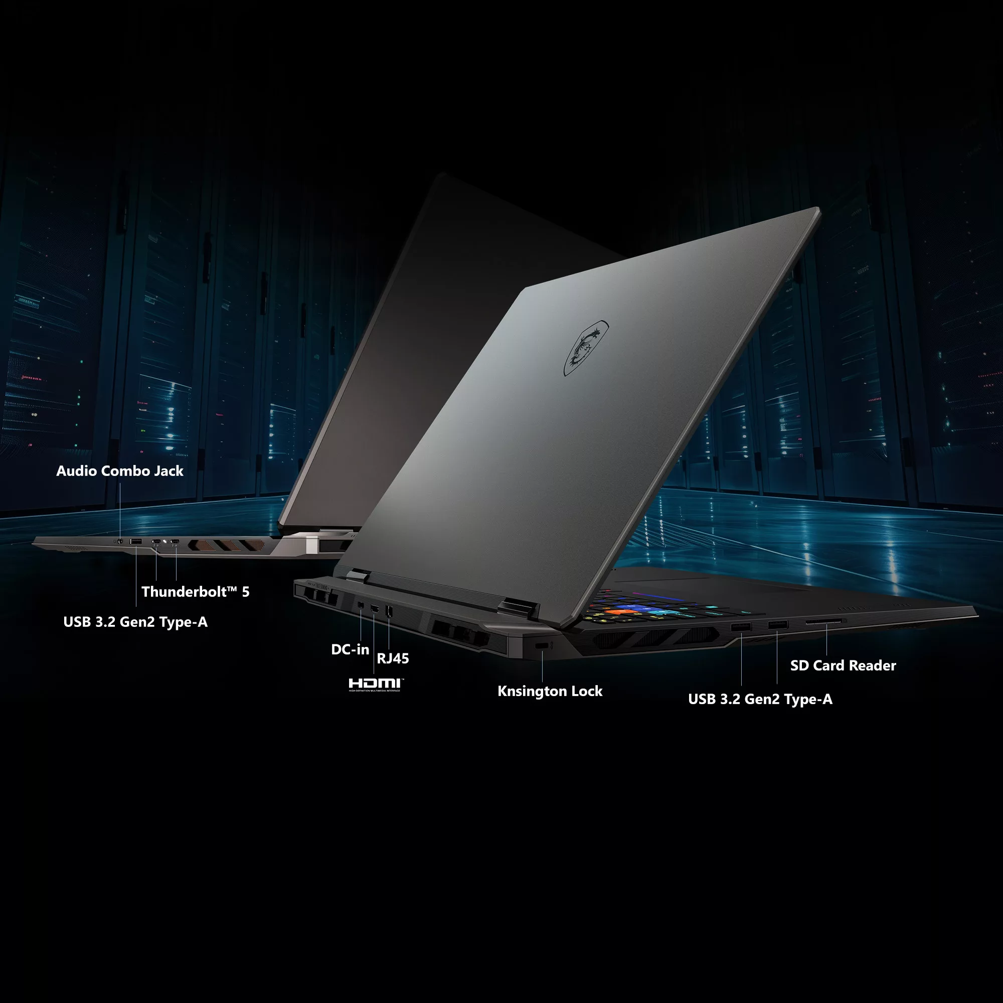 Le Vector 18 HX AI propose une connectique complète pour vous assurer la prise en charge de tous vos périphériques. Il vous donne ainsi toute la flexibilité qu’il vous faut pour une expérience de jeu parfaite.