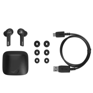 Les écouteurs gaming ASUS ROG Cetra True Wireless sont conçus pour le jeu et le divertissement. Ils offrent une connexion sans fil à faible latence, une technologie de réduction de bruit active, une autonomie pouvant atteindre 27 heures (avec le boîtier de recharge sans fil), une résistance à l’eau IPX4 et une prise en charge de l’EQ/virtual 7.1 via Armoury Crate.