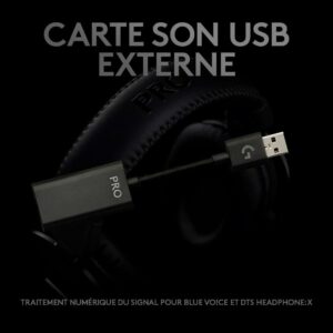 Conçu en collaboration avec de nombreux joueurs professionnels sur divers genres de jeux, le Logitech G Pro X Gaming Headset va vous permettre d’entendre les sons de votre jeu avec précision. Avec des transducteurs Pro-G de 50 mm en similicuir isolants, un son surround DTS Headphone:X 2.0, un microphone de qualité professionnelle disposant de la technologie Blue Vo!ce et une construction légère, le Logitech G Pro X Gaming Headset est l’accessoire idéal pour les tournois intenses.