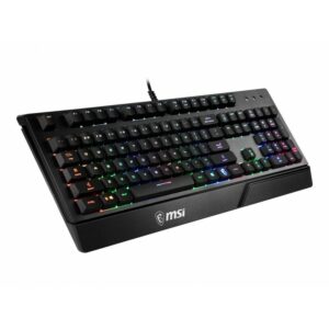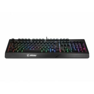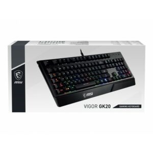 S’adressant aux joueurs désirant du matériel de qualité mais néanmoins accessible le clavier MSI Vigor GK20 se montre complet pour vous permettre de remporter encore plus de parties. Il est équipé de touches au design ergonomique qui permettent de profiter d’une excellente sensation de frappe. Doté d’un système de rétroéclairage RGB, ce clavier est aussi très résistant puisqu’il résiste aux projections d’eau. Des bandes antidérapantes en caoutchouc sont également placées au niveau de sa base pour assurer une meilleure stabilité de l’ensemble.