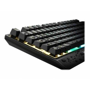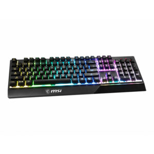 S’adressant aux joueurs désirant du matériel de qualité mais néanmoins abordable le clavier MSI Vigor GK30 se montre très complet pour vous accompagner durant vos parties. Il est équipé d’interrupteurs à membrane à Switches Plunger qui permettent d’imiter la sensation de frappe d’interrupteurs mécaniques tout en se montrant moins bruyants que ces derniers. Doté d’un système de rétroéclairage RGB à 6 zones, ce clavier est aussi résistant puisqu’il résiste aux projections d’eau. Une « Gaming Base » est également placée sous la touche espace pour assurer une meilleure solidité générale à l’ensemble.