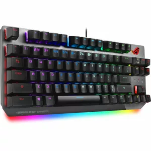 Augmentez vos prouesses sur le champ de bataille grâce au ASUS ROG Strix Scope TKL ! Ce clavier mécanique est doté de switches Cherry MX Brown, parfait pour les joueurs à la recherche d’un confort supérieur et d’un fonctionnement silencieux. Agréable à regarder, le clavier ROG Strix Scope TKL est recouvert d’une plaque avant en aluminium pour une meilleure durabilité alors que son rétroéclairage RGB Aura Sync apportera un style différent des autres claviers.