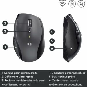 a forme profilée pour droitiers de la Logitech Marathon Mouse M705 imprime à votre main une courbure assurée et place des commandes personnalisables à votre portée. Profitez du défilement ultra-rapide de la molette pour vous permettre de parcourir plus rapidement les pages Web et les documents et utilisez le défilement par paliers pour vous déplacer avec précision.