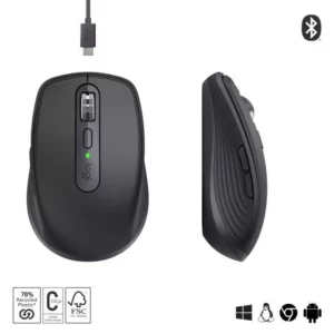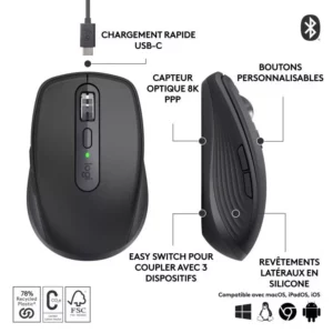 Alliant polyvalence et performances exceptionnelles, la Logitech MX Anywhere 3S va vite devenir indispensable à votre quotidien. Cette souris compacte est conçue spécialement pour le travail mobile, que ce soit en télétravail, dans un café ou à l’aéroport. La souris MX Anywhere 3S fonctionne sur pratiquement toutes les surfaces, y compris le verre d’une épaisseur minimale de 4 mm. Ainsi, vous pouvez travailler sans accroc au bureau, dans votre café favori ou même sur votre canapé.