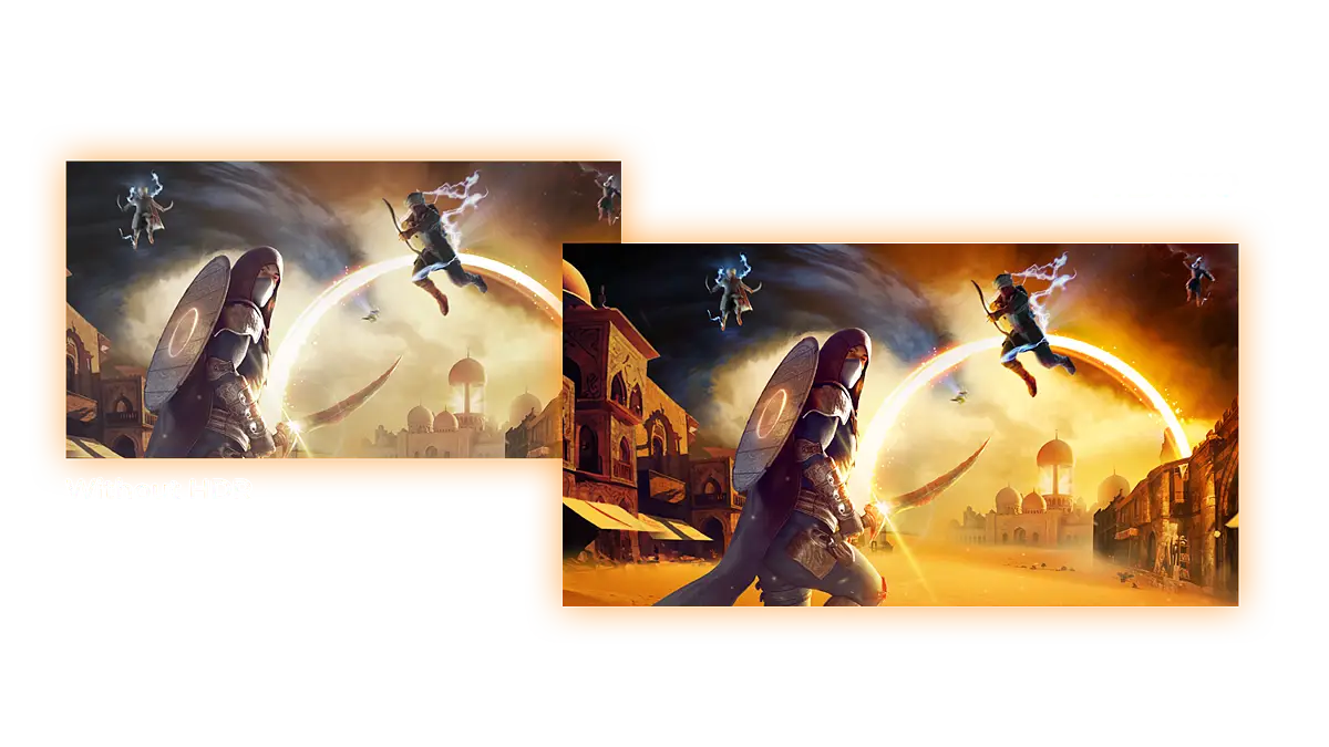HDR10 est là pour améliorer encore davantage la qualité d’image, en améliorant la synchronisation de votre GPU ou de votre console avec le moniteur. Cela crée une expérience de jeu plus réaliste, immersive et fluide : Vous aurez l’impression de vous plonger dans le jeu, image par image.