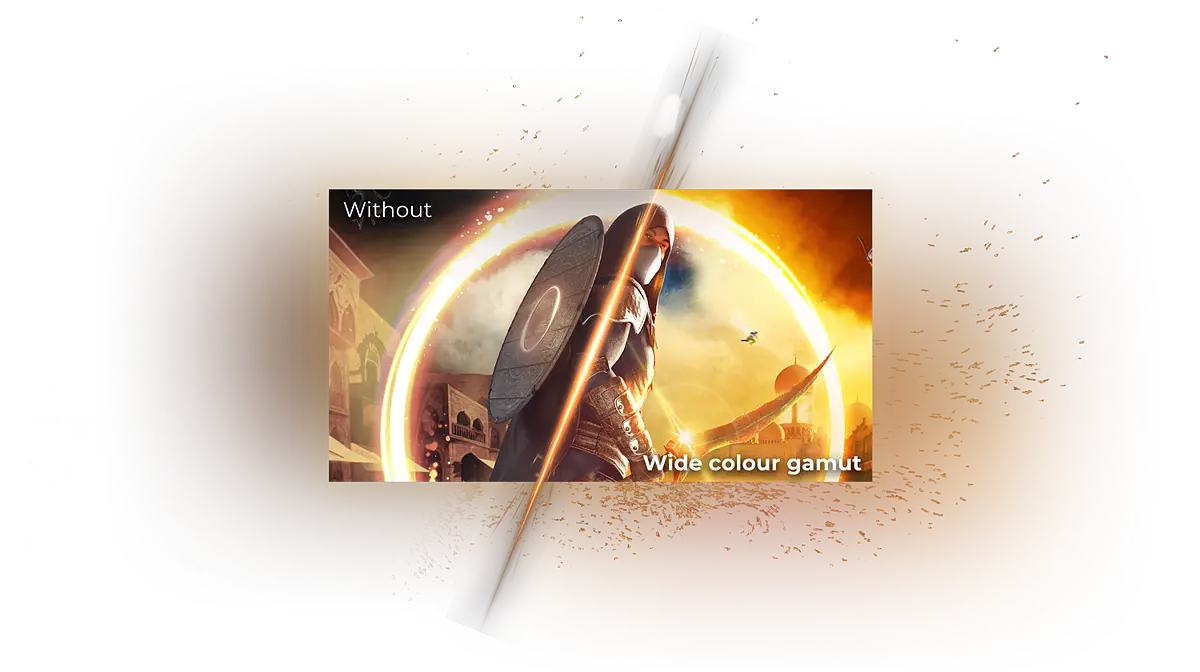 Quand vous profitez de vos photos, de vos vidéos ou de vos jeux, nous souhaitons que ce que est sur votre écran soit le plus réaliste possible. C’est la raison pour laquelle cet écran dispose de la technologie Wide Color Gamut qui lui permet d’afficher bien plus de couleurs que les écrans ordinaires. Et cela est dû à une solution matérielle spéciale et non à de simples réglages logiciels. Le résultat : des images plus vraies que nature aux détails affinés qui deviennent visibles grâce à l’étendue de la palette de couleurs.