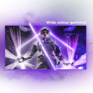 Quand vous profitez de vos photos, de vos vidéos ou de vos jeux, nous souhaitons que ce que est sur votre écran soit le plus réaliste possible. C’est la raison pour laquelle cet écran dispose de la technologie Wide Color Gamut qui lui permet d’afficher bien plus de couleurs que les écrans ordinaires. Et cela est dû à une solution matérielle spéciale et non à de simples réglages logiciels. Le résultat : des images plus vraies que nature aux détails affinés qui deviennent visibles grâce à l’étendue de la palette de couleurs.