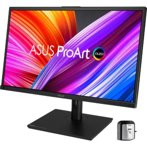 ASUS ProArt PA27DCE-K. Taille de l’écran: 68,3 cm (26.9″), Résolution de l’écran: 3840 x 2160 pixels, Type HD: 4K Ultra HD, Technologie d’affichage: OLED, Temps de réponse: 0,1 ms, Format d’image: 16:9, Angle de vision horizontal: 178°, Angle de vision vertical: 178°. Haut-parleurs intégrés. Concentrateur USB intégré, Version du concentrateur USB: 3.2 Gen 1 (3.1 Gen 1). Montage VESA, Réglage de la hauteur. Couleur du produit: Noir