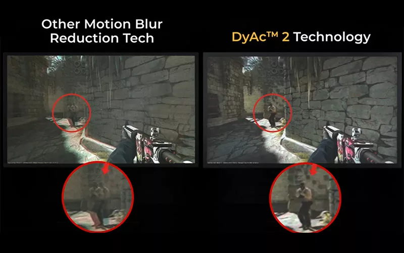 Grâce à la conception exclusive des dalles ZOWIE, Dynamic Accuracy 2 (DyAc 2) offre un haut niveau de fluidité d’image en mouvement, pour une expérience visuelle de haut niveau ! Grâce à sa technologie de double rétroéclairage, DyAc 2 optimise les performances en matière de réduction du flou tout en offrant une lumière douce qui favorise l’adaptation de l’œil.