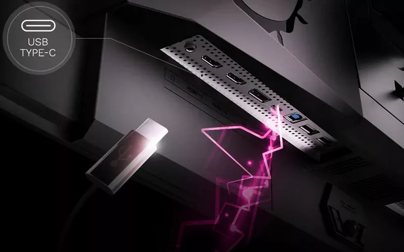 Pour une compatibilité étendue, le moniteur MSI MPG 321URX QD-OLED dispose de connecteurs DisplayPort, HDMI et USB-C. De plus, le port USB Type-C vous permet de recharger vos périphériques (jusqu’à 90 watts) et de supporte le signal vidéo grâce à la fonction DisplayPort Alt Mode. En connectant votre écran et votre PC avec le câble USB fourni, profitez de plusieurs ports USB pour connecter tous vos périphériques et gagnez la possibilité de régler facilement les paramètres de l’écran en utilisant votre souris.