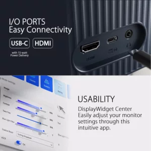 Les moniteurs VU disposent des connecteurs qu’il vous faut au quotidien. En plus du port HDMI populaire, ils sont équipés d’un port USB Type-C qui prend en charge le signal DisplayPort et l’alimentation USB de 15 watts. Cela vous offre la liberté de connecter les appareils dont vous avez besoin et de maintenir la surface de votre bureau dégagée pendant que vous travaillez ou jouez.