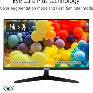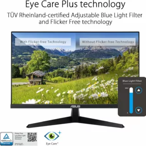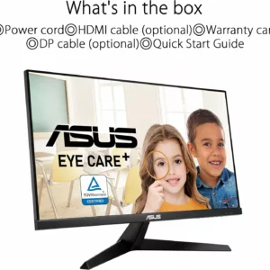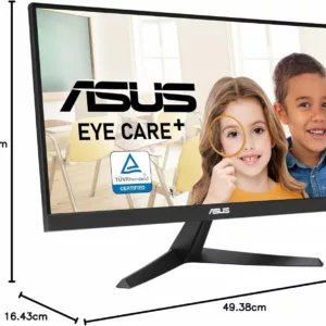 Moniteur Eye Care ASUS VY279HE-W – 22 pouces (21,45 pouces visibles) Full HD (1920 x 1080), IPS, 75Hz, IPS, 1ms (MPRT), FreeSync, technologie Eye Care Plus, augmentation des couleurs, rappel de repos, filtre de lumière bleue, Flicker-free, traitement antibactérien, DisplayPort