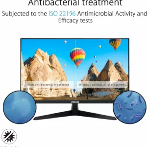 Le cadre et les touches de raccourcis du ASUS VY229Q ont été soumis à un traitement antibactérien à base d’argent ionique. En évitant l’adhésion de bactéries jusqu’à 99,9 %, ce traitement améliore l’hygiène du moniteur et réduit potentiellement la propagation des bactéries nocives.