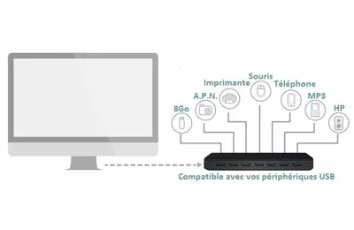 Les 7 ports disponibles vous permettent de ne pas avoir à déconnecter un périphérique pour en connecter un autre