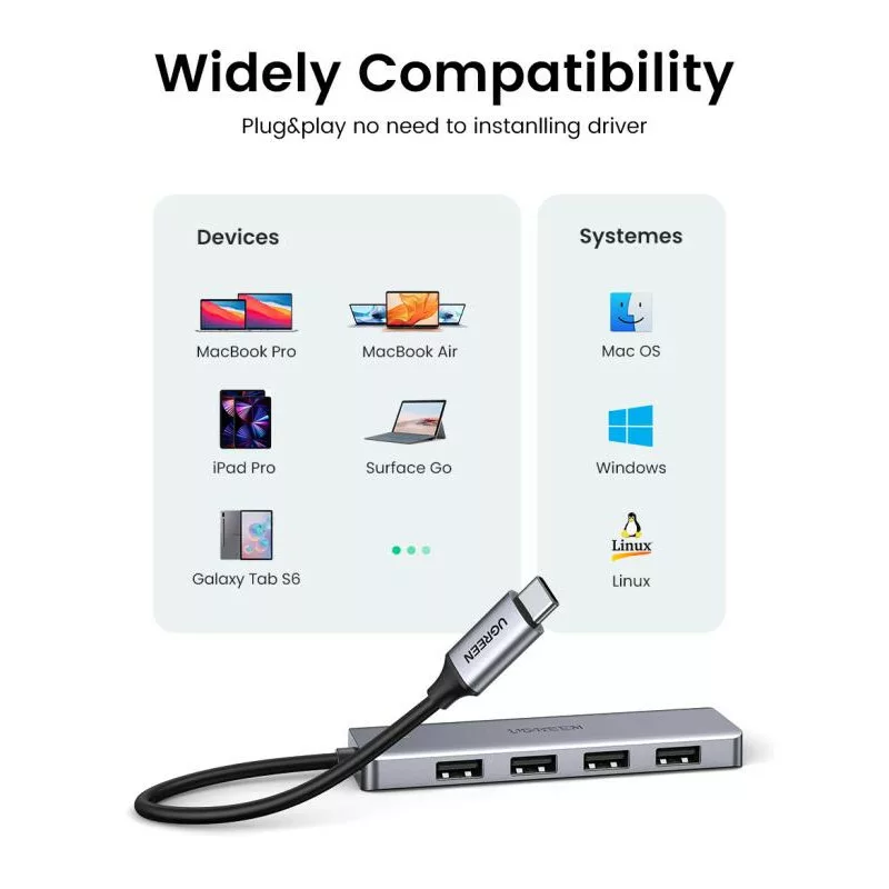 UGREEN Hub 4-Port USB3.0 avec Port Alimentation