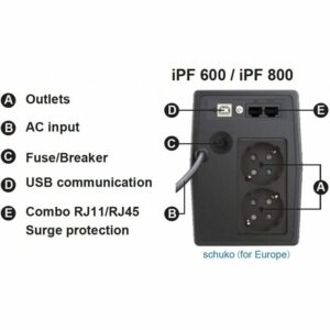 L’onduleur FSP iFP 800 de type Line Interactive intègre une régulation automatique de la tension pour minimiser l’impact de l’instabilité électrique de vos équipements. Retrouvez un écran tactile LCD, des prises électriques Schuko et IEC 13, deux connecteurs RJ11/45 ainsi qu’un port USB-B. Compact et fiable, ce modèle apporte une protection optimale et sera capable d’alimenter vos appareils même en cas de coupure de courant.