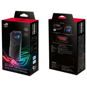 Le ROG Strix Arion d’ASUS est un boîtier externe USB pouvant accueillir un SSD M.2 PCIe NVMe (format 2230/2242/2260/2280). Il embarque une interface USB 3.1 qui délivre des vitesses de transferts de données allant jusqu’à 10 Gbit/s. Son revêtement en aluminium présente des protections thermiques qui améliorent la dissipation de la chaleur pour des performances soutenues dans le temps.. Par ailleurs, il produit des effets lumineux RGB via ASUS Aura Sync et peut s’accrocher facilement à l’aide d’un mousqueton en forme de « R ». Le ROG Strix Arion représente une solution de stockage à la fois performante et mobile.