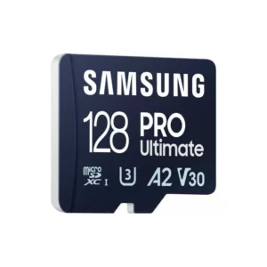 Samsung MB-MY128S. Capacité: 128 Go, Type de Carte Flash: MicroSDXC, Type de mémoire interne: UHS-I, Vitesse de lecture: 200 Mo/s, Vitesse d’écriture: 130 Mo/s, Classe de vitesse UHS: Class 3 (U3), Classe de vitesse vidéo: V30. Fonctions de protection: Anti-goutte, Résistant à un aimant, Résistant à une température, Imperméable, Résistant aux rayons X, Couleur du produit: Bleu