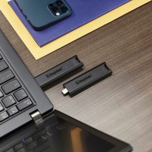 La clé DataTraveler Max de Kingston est une clé USB qui est dotée d’une interface USB 3.1 Type A afin d’offrir des débits de lecture pouvant atteindre 1000 Mo/s et d’écriture de 900 Mo/s. La portabilité et la convivialité sont au cœur du design, comme en témoigne le boîtier rainuré qui protège le connecteur quand la clé n’est pas utilisée et qui se retire aisément d’un seul mouvement.