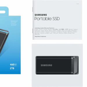 Le SSD externe Samsung T5 EVO vous permet de stocker votre travail, vos contenus, vos jeux… Ses vitesses de transfert pouvant aller jusqu’à 460 Mo/s confèrent au T5 EVO des performances robustes. Ce SSD externe propose de grandes capacités de stockage, une protection sécurisée des données et la technologie Dynamic Thermal Guard pour contrôler la température.