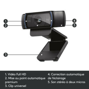 Avec la compression AVC H.264, bénéficiez d’une vidéo de qualité haute définition (HD) à la maison ou au bureau. La compression vidéo est nécessaire pour obtenir une résolution HD en temps réel sur des bandes passantes de connexion Internet standard. La webcam C920 utilise la compression d’encodage H.264 pour offrir des vidéos de haute qualité à des débits binaires faibles.