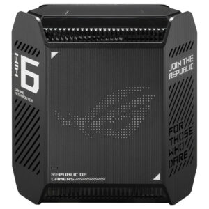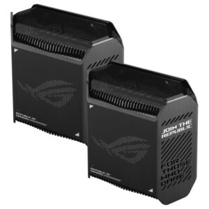 L’ASUS ROG Rapture GT6 est un routeur Wi-Fi AX10000 qui s’inspire de l’esthétique ROG et présente des motifs hexagonaux distinctifs. Tout le potentiel des trois bandes de fréquences : 2.4 GHz, deux bandes 5 GHz, avec des canaux de 160 MHz dans les bandes 5 GHz pour vous offrir les vitesses les plus rapides possibles. Il propose 1 port WAN 2.5 GbE le support d’AiMesh, de VPN Fusion et l’accélération des jeux à triple niveau ainsi que la sécurité réseau gratuite.