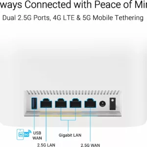 Un port WAN 2,5G et un port LAN 2,5G pour le divertissement de nouvelle génération, les studios à domicile et le backhaul filaire 2,5G ultra-rapide.