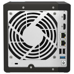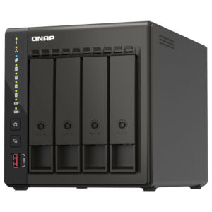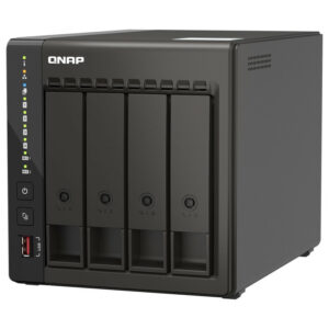 Le NAS QNAP TS-453E comprend une double connectivité 2.5 GbE, 8 Go de RAM et 2 emplacements M.2 pour le cache SSD NVMe afin de délivrer des performances élevées pour les applications telles que les systèmes de surveillance, les machines virtuelles, les serveurs de fichiers ou les serveurs de sauvegarde. Deux sorties HDMI fournissent également une lecture multimédia directe et une solide surveillance.