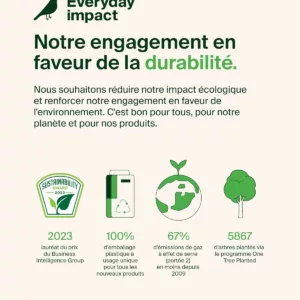 PRODUIT DURABLE SOUS GARANTIE : son revêtement a été conçu à partir d’au moins 72 % plastiques recyclés post-consommation et son emballage est dépourvu de plastique. Il est couvert par une garantie 2 ans.