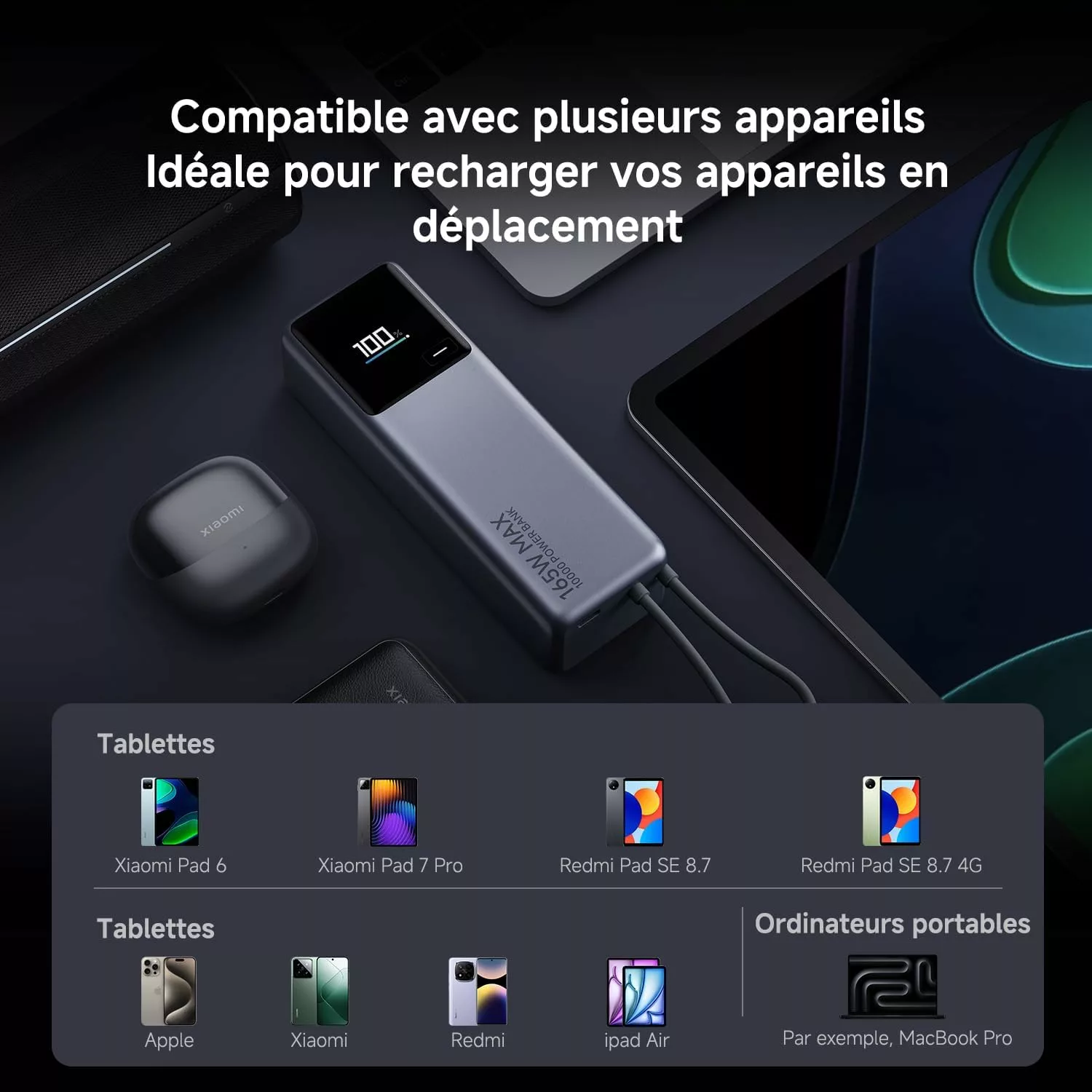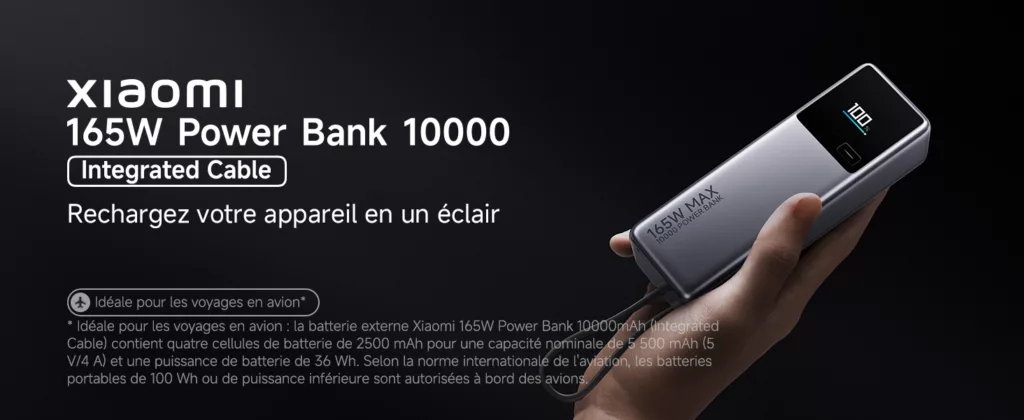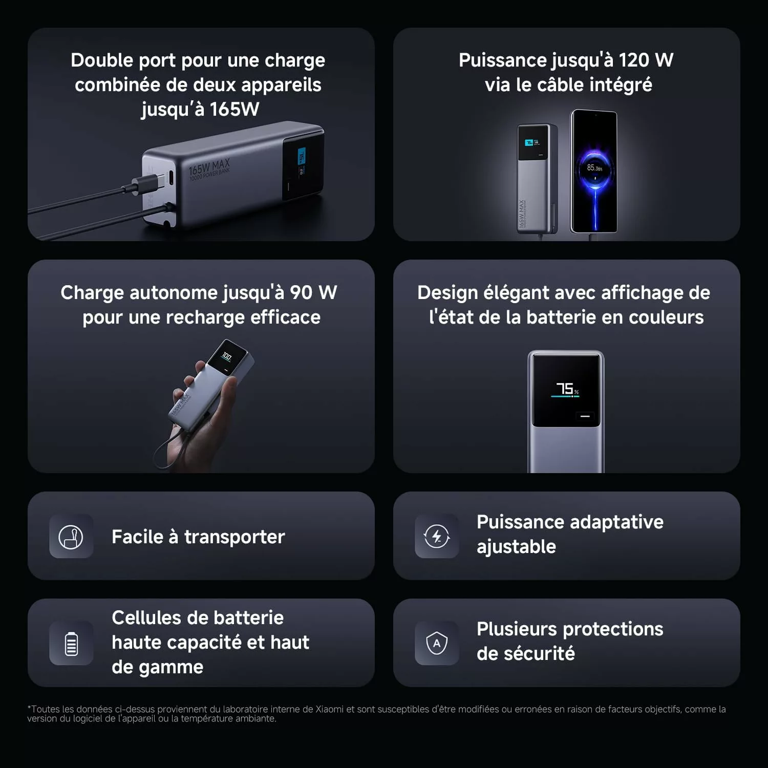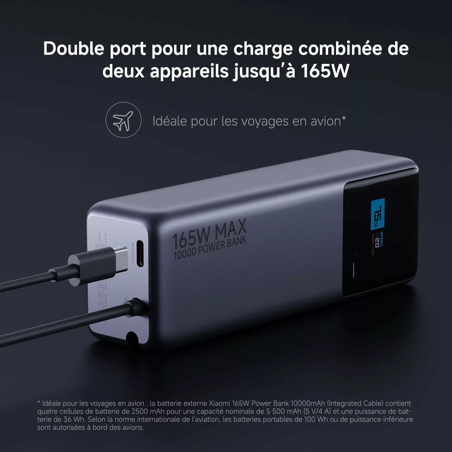 Xiaomi 165W Power Bank 10000mAh avec câble USB-C, 165W Double Ports, Charge Automatique 90W, Batterie Lithium-ION, qualité aéronautique, pour iphone, Samsung, MacBook, Xiaomi, Pixel