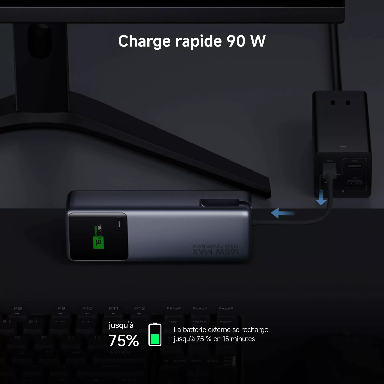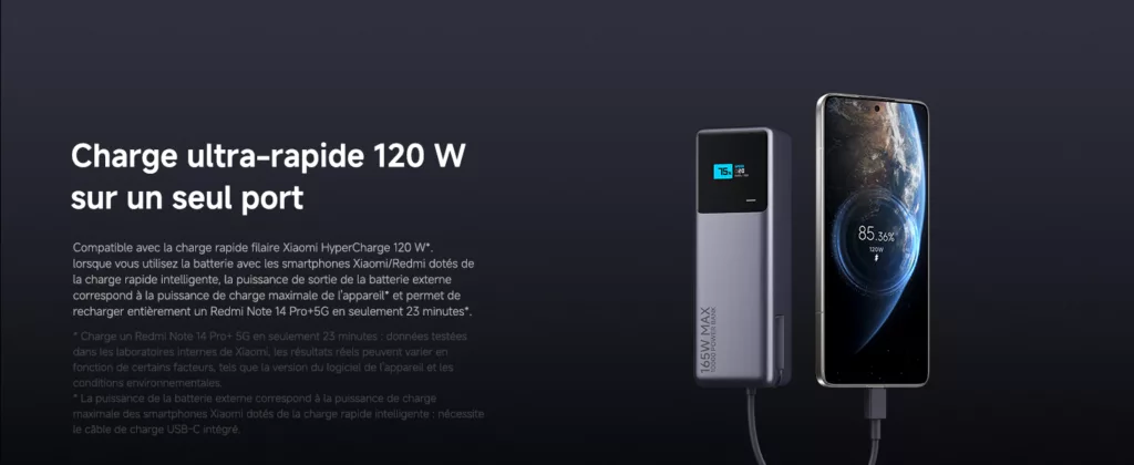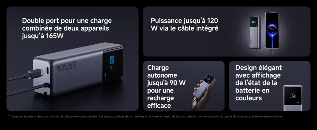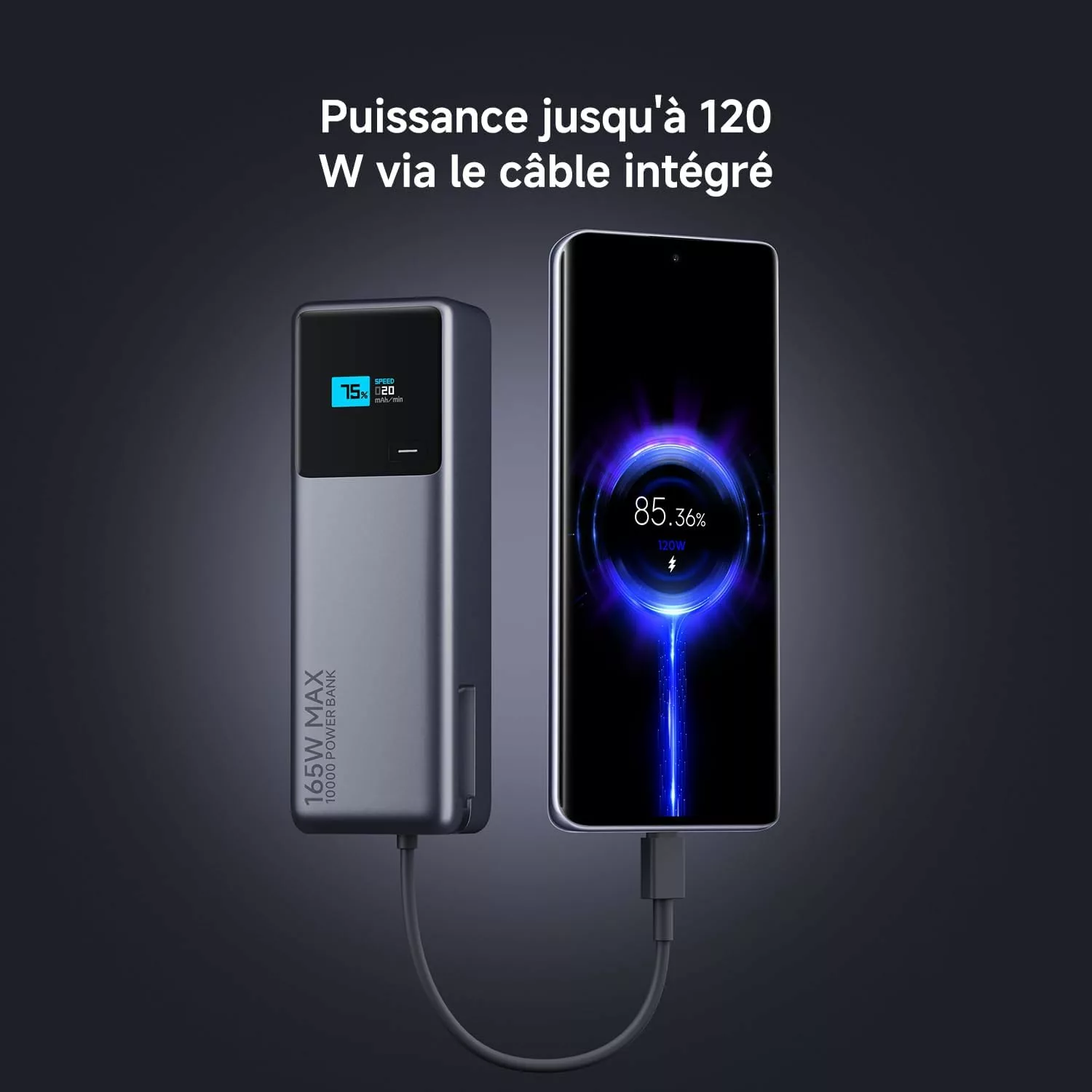 Xiaomi 165W Power Bank 10000mAh avec câble USB-C, 165W Double Ports, Charge Automatique 90W, Batterie Lithium-ION, qualité aéronautique, pour iphone, Samsung, MacBook, Xiaomi, Pixel