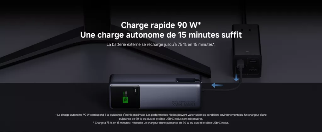 Auto-charge jusqu’à 90 W pour une recharge efficace