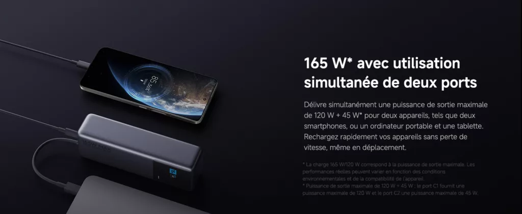 Deux ports avec une puissance de sortie totale allant jusqu’à 165 W